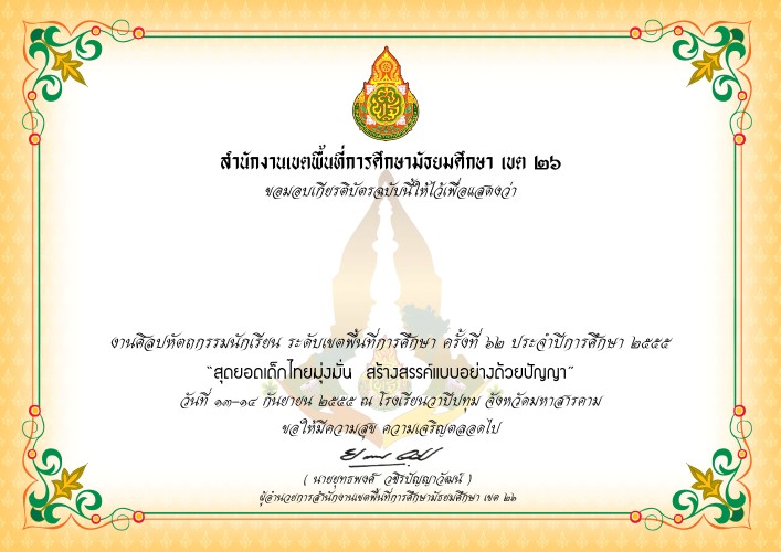 ลักณะหน้าตา หรือพื้นหลังเกียรติบัตร ให้แต่ละเขตสามารถออกแบบเพื่อเป็นเอกลักษณ์เฉพาะเขตได้